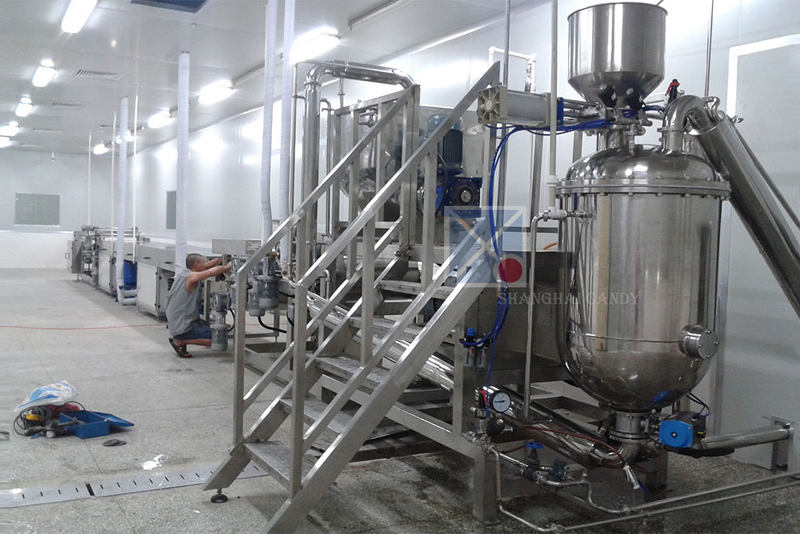 该生产线用来生产花生牛轧糖,主要由熬糖机组、搅拌机、压辊机、冷水机和切割机等组成。同时,该设备可以在高自动化并且完全不破坏产品内部营养成分的前提下,一次性完成从原料到成品的操作。该生产线具有结构合理、高效率、外形美观、安全卫生、性能稳定等特点。它是一条能够帮助客户降低设备成本,生产出高品质花生牛轧糖的理想设备。该机组生产出的牛轧糖软硬度适中,口味香醇。