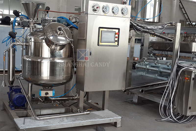 该熬糖锅专为生产焦香类糖果而设计制造,加热方式为蒸汽夹套加热,内部刮边搅拌,有效地防止了糖膏在熬煮过程当中焦化。该机可熬煮太妃糖、卡拉蜜儿、怡口莲等糖果。